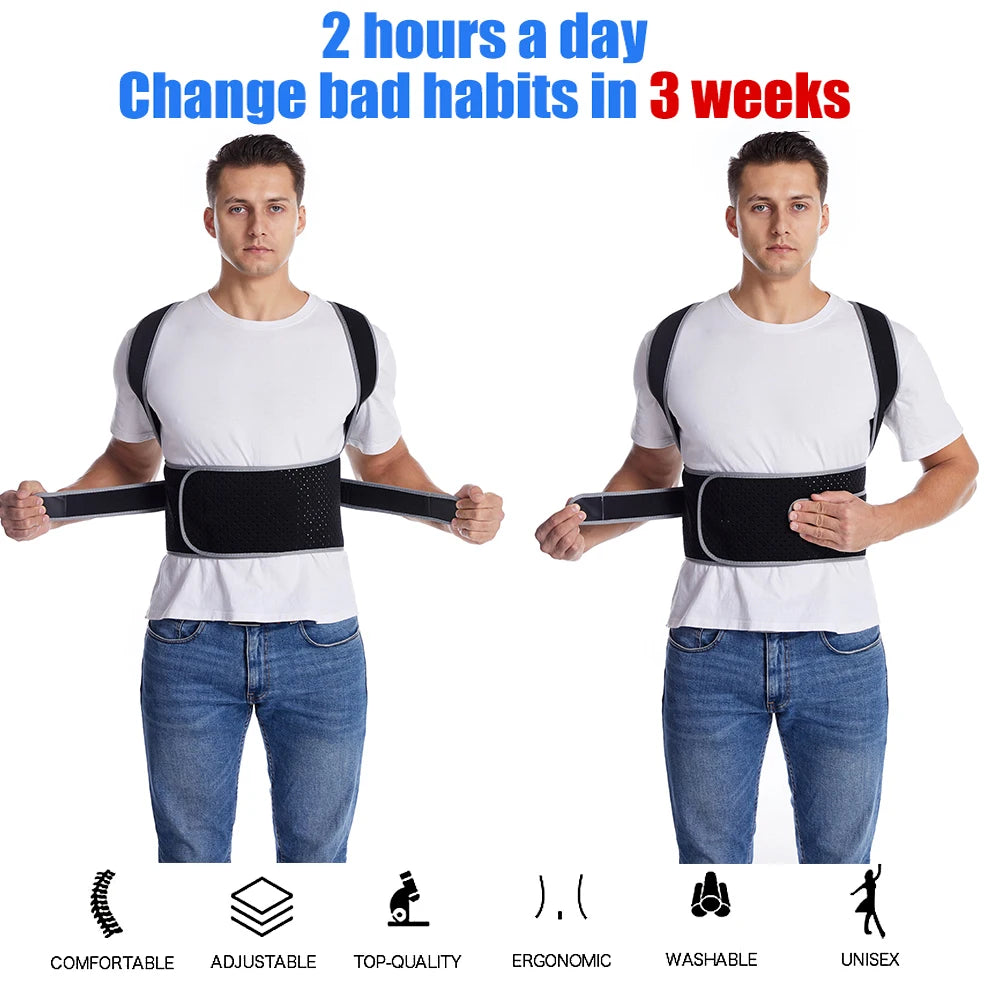 Fully Adjustable Back Shoulder Posture Corrector Belt, Clavicle Spine Support, Reshapes Your Body
